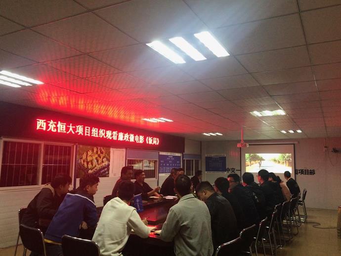 为了提高项目管理人员的廉政意识,在工作中履行好自己的职责,双龙项目组织全体员工观看廉政微电影《在路上》。