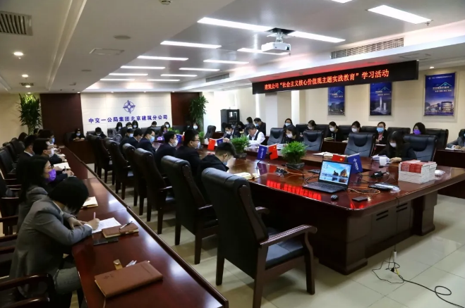 活动中,首先对一公局集团印发的《社会主义核心价值观主题实践教育月活动通知》进行了宣贯。随后全员一起学习了“两路”精神,《新时代公民道德建设实施纲要》,并结合企业在建设重大工程与疫情防控阻击战的实际,观看了行业中涌现出的张军性等8名先进典型人物事迹视频与驰援武汉方舱医院建设的宣传片。