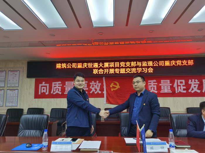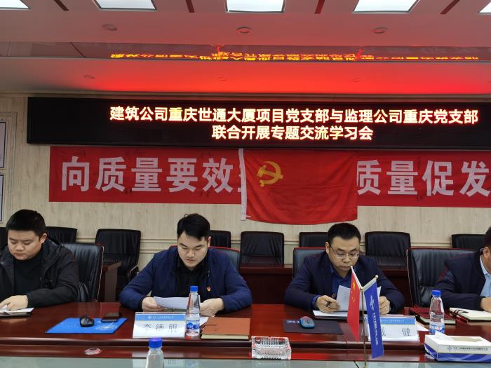 11月1日,监理公司重庆党支部书记带领党员及党务工作者一行共11人来到建筑公司重庆世通大厦项目,就党建工作开展专题交流和联学共建,世通大厦项目书记李德朋主持本次活动。
