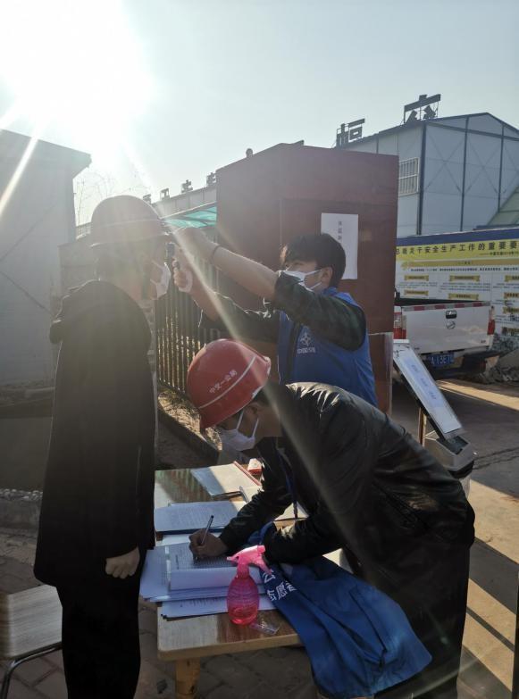 项目部、生活区、施工现场门口专人值守,把好疫情防控第一道防线。所有人员进场先于项目部进行登记备案、防疫知识培训,考试合格后由项目部配发工作证,人员进出均需凭工作证进行登记、测量体温、消毒,没有工作证的人员不准进入项目部、生活区及施工现场。项目部及生活区每日由专人进行两次消毒,做到不放过任何一个可能滋生病菌的死角。后勤部门也按照要求配备满足使用需求数量的口罩和红外线测温仪,根据实际用量储备相应数量的酒精、84消毒液。项目部延长供餐(饮)时间,采取有效的分流措施,实行错峰就餐,独自就餐,避免扎堆就餐。