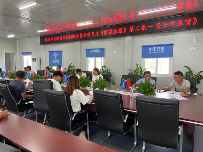 为筑牢党员领导干部拒腐防变思想防线,使项目廉政警示教育常态化,6月 22 日,海南中医院项目组织项目全体党员及项目部全体职工观看《国家监察》第二集《全面监督》。