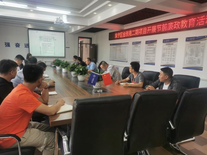 项目党支部为了营造良好的廉政氛围,进一步提高全体员工拒腐防变的能力,确保廉洁过节。组织全体全体职工,集中学习了中央八项规定和“十五个严禁”精神,进一步增强全体员工的廉洁自律和勤俭节约意识,通过剖析近来发生的重大典型案件,教育大家汲取教训,保持高度的警惕性,切实做到防微杜渐、警钟常鸣,提高廉洁自律意识和守法观念。