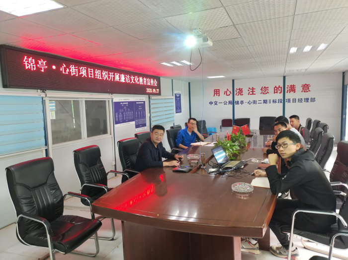 锦亭·心街项目以“作风整顿月”活动为契机,围绕项目部当前工作,结合中秋、国庆双节期间的防止“四风”反弹的要求,加强党风廉政建设,不断加强职工廉洁教育,努力营造风清气正的良好局面,组织开展廉洁文化教育宣传会。