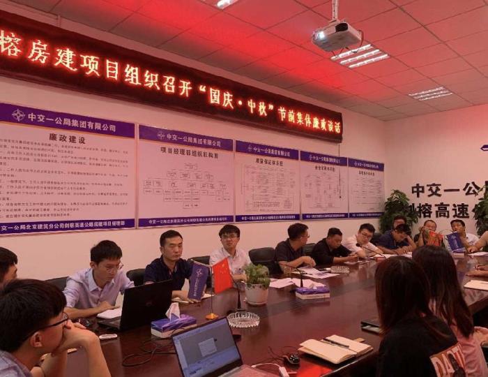 9月30日,为进一步落实全面从严治党要求,切实增强关键敏感岗位人员的廉洁自律意识,着力营造项目部清风气正、文明祥和的节日环境, 剑榕高速公路房建项目召开了“中秋、国庆”节前廉政谈话会议,项目全体员工参加。