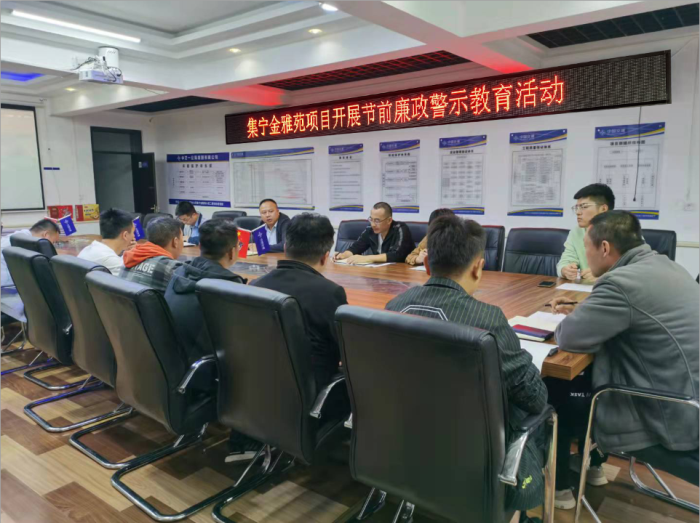 中秋、国庆临近,为确保节日期间风清气正,近日,建筑公司集宁金雅苑项目组织全体职工开展节前廉洁提醒和警示教育活动,项目经理秦四辉主持会议。