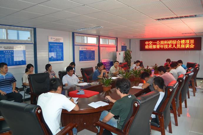 8月3日下午4点,局科研综合楼项目经理部在项目会议室召开了青年技术人员座谈会。项目经理李德顺、项目书记张长青、生产经理马恩军、项目总经苏红红以及各科室青年技术人员参加了此次会议。