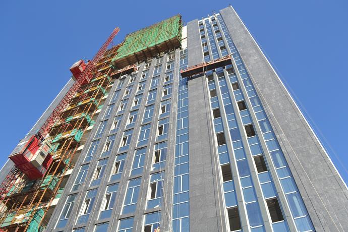 局科研综合楼幕墙工程由沈阳远大铝业工程有限公司承建,幕墙面积5万平,施工范围主要为明框玻璃幕墙、隐框玻璃幕墙、石材幕墙、铝板幕墙、铝板雨篷等。