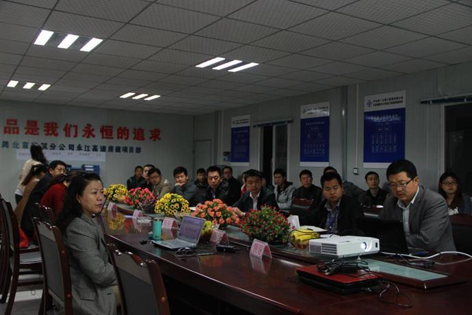 上午,杨老师一行在项目部会议室听取了项目部李晓光总工关于项目施行的三大管理体系工作的汇报。李晓光总工对项目进度情况、质量管理、人员管理、环保以及文明施工管理方面进行了详细讲解。在听取汇报后,杨老师对项目各项工作表示了认可,并指出各项规章制度、管理模式要形成体系并且延续下去。会上,杨老师特别强调了工程项目中安全工作的重要性,一切工作要安全先行,确保人员健康、安全,杜绝安全隐患。杨永红经理对外审组的到来表示了热烈欢迎,并表示一定做好各项管理和生产工作。
