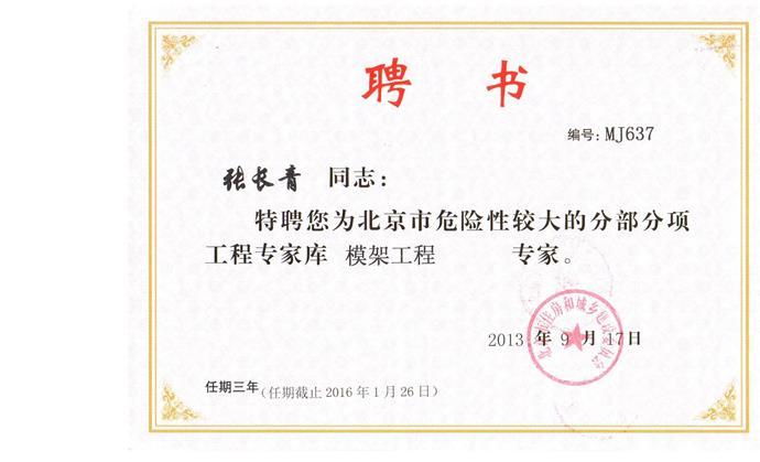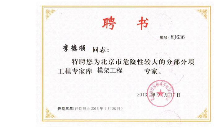 局科研综合楼项目李德顺、张长青获聘 “北京市危险性较大的分部分项