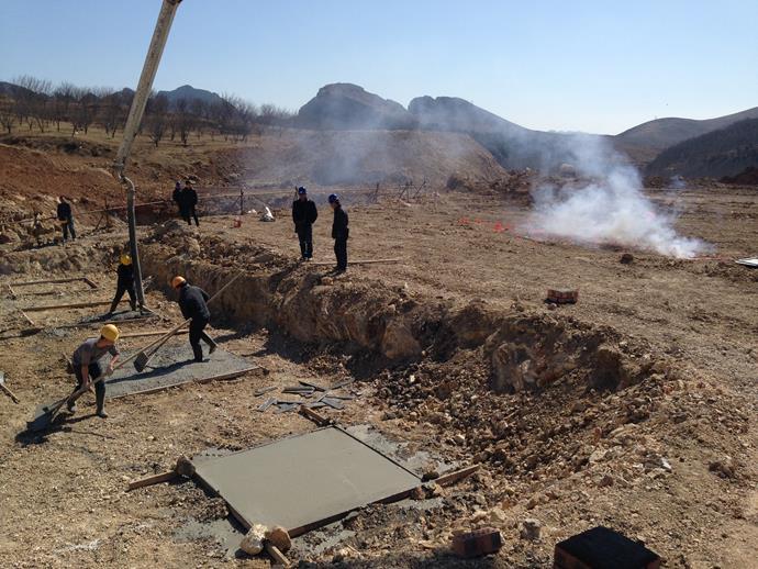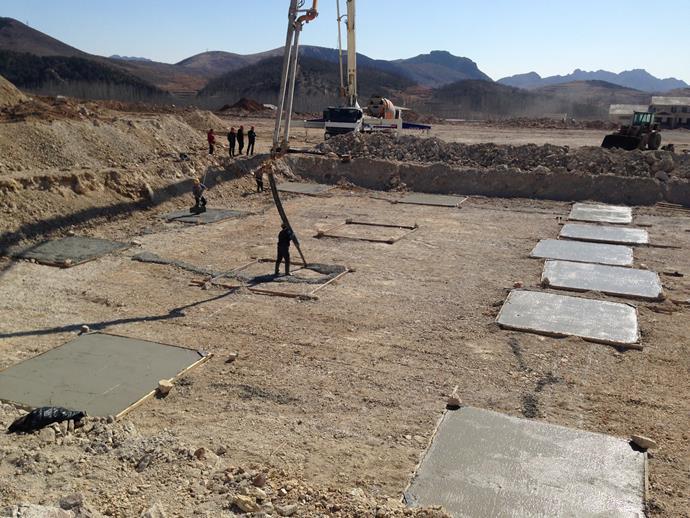 3月13日,鸽子洞服务区北侧综合楼、宿舍楼、汽修间三栋建筑的基础垫层浇筑完毕。由于气温较低,项目选择在中午气温较高的时候开始浇筑,浇筑工作从中午11点一直进行到下午5点结束。