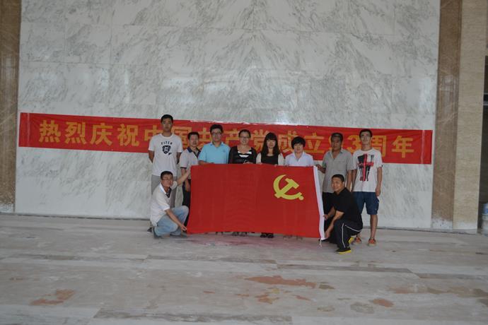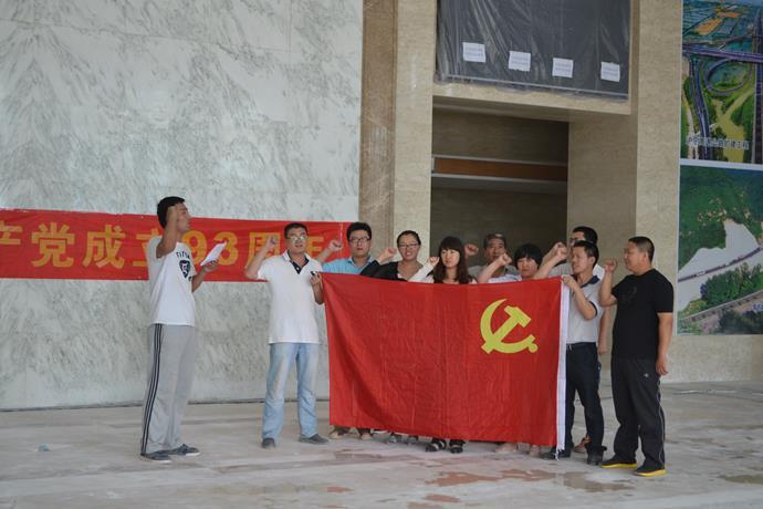 为热烈庆祝中国共产党建党93周年,进一步增强党员的责任感和使命感,科研楼项目全体党员于7月1日在主楼Ⅱ段大厅内进行了“七一”宣誓活动。