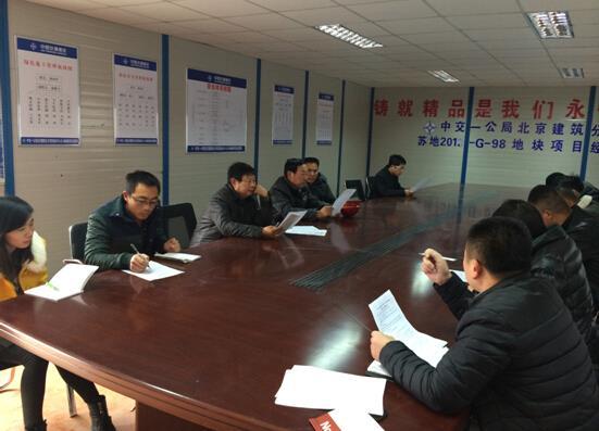 12月11日14点整,项目经理刘向军,书记王稚中,物设部部长秦冠龙等各部门主要负责人与盐城二建的主要负责人在苏地2013-G-98块地中交名品大厦项目经理部会议室召开会议,会议主要内容就项目与协作单位(盐城二建)间材料间材料问题进行协商。