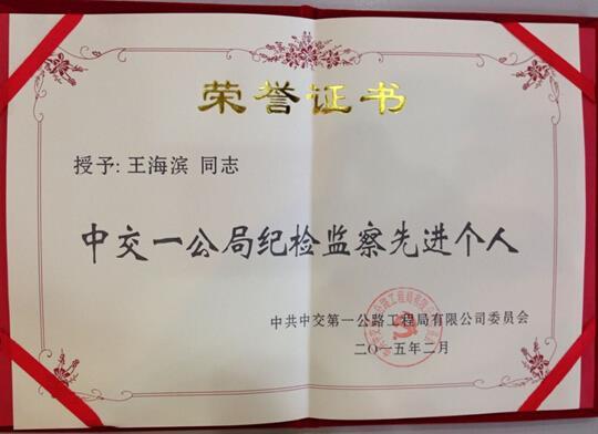 2月11日,在局召开的2015年纪检监察工作会上,对2014年度全局7名纪检监察先进个人进行表彰。我公司永江项目党支部纪检委员王海滨获得“2014年度局纪检监察先进个人”荣誉称号。