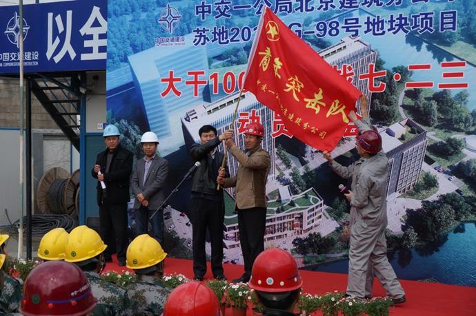 会上,公司党委赵书记代表公司领导班子感谢项目员工为公司发展作出的努力,向劳务队代表授予“青年突击队”红旗。并对项目员工奋发向上的精神面貌给与肯定。鼓励项目全体工作人员通过这次劳动竞赛,从即日立即起行动起来,各部门互帮互助,统一思想,建立奖罚机制,激发施工动力,清除施工障碍,集中人力、财力抓紧施工保目标,以精心组织、重安全、保质量,保证以工程质量为主的新一轮施工高潮。