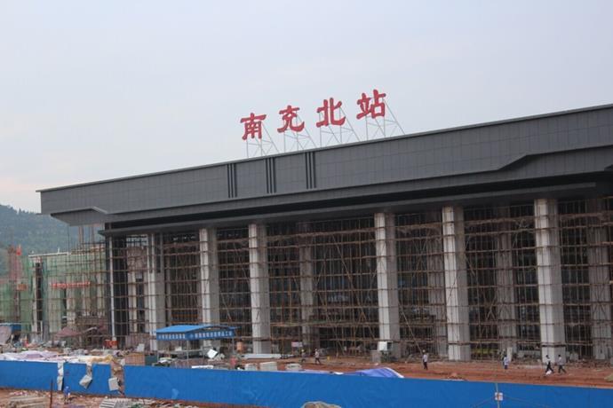陈东杰副总经理等一行视察了南充北站主站房、站区部分的施工情况,给予了高度评价:南充北站虽然并不是广元至渭沱段最早动工的,但是经过中交一公局房建分部的不懈努力,南充北站已成为兰渝正线施工进度最快、施工质量最好的站房工程。新建南充北站为兰渝铁路上线最大的一个中间站,建筑形式新颖,各种功能齐全,配套设施完善,是一座现代化的铁路客运站。车站建成通车之后,将达成铁路与兰渝铁路联系在一起,将会加大南充地区与外界的经济、文化交流,成为川东北地区重要的铁路枢纽。