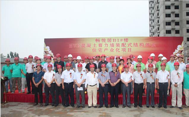 7月16日上午,由公司承建的位于北京市昌平区北七家畅镇的畅悦居B1#楼住宅产业化项目举行开工仪式。该项目为北京市落实推进住宅产业化工作而进行的示范项目之一,是“装配式预制圆孔板剪力墙结构”理论体系在高层建筑上全国首次应用;该体系预制构件研制及生产由北京珠穆朗玛绿色建筑科技有限公司负责(由厂家命名为EVE体系)。