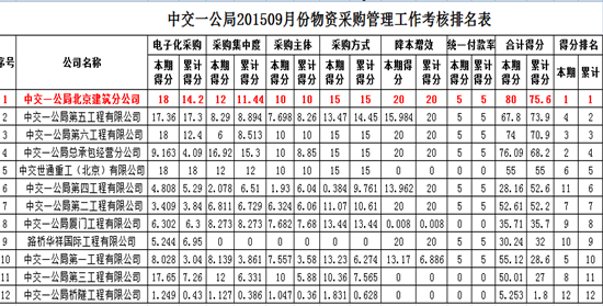 2015年开展物资集中采购管理工作以来,公司物资设备科依照局采购管理工作考核办法要求,通过加强项目人员集采管理意识,拓宽集中采购物资设备目录,增强对项目采购工作的监督与管理,认真及时录入1至9月采购数据等途径,最终取得全局三季度末集采指标考核总分第一的好成绩,体现了公司物资集中采购管理工作的重视与进步。