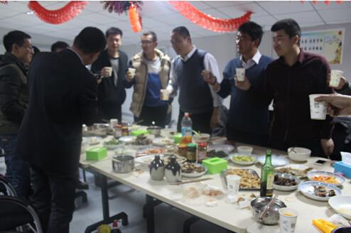 在春节调休安排时,项目经理王刚、项目书记周连河、项目生产副经理马恩军及2014年大学生主动提出驻守工地,让其他同事能回家团圆,这种舍己为人的精神令其他同事倍受感动。我们来自五湖四海,但有共同的建设目标。第一次在外地过春节,感觉特别有意义。虽然在异地他乡,但对春节还是有着相同的期待。项目领导带领大家贴春联,包水饺,一起准备年夜饭看春晚跨年。大家围坐在一起,像亲人一样,杯觥交错,欢声笑语,互送祝福吉祥,像家一样的温暖。当值的同事丝毫不敢放松,匆匆吃完饭又坚守到自己的岗位上去了。公司领导纷纷致电慰问,带来新年的祝福。