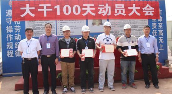 最后,王刚经理做总结性发言。王经理首先对我项目2014年所取得的各项成绩表示肯定,并对因工作出色而受到局、公司表彰的优秀员工颁发了荣誉证书及奖励,要求获奖员工再接再厉,争取更大成绩,希望其他所有员工向获奖员工学习,在各自的岗位上做出业绩。第二,他指出了目前我项目所面临的工期紧、任务重、责任大的机遇和挑战,要求全体项目员工继续发扬苦干、实干的精神,充分调动自身的工作积极性,各协作队伍加强管理,提升管理水平,号召全体参建人员全身心的投入到大干一百天的劳动竞赛活动中,坚定信心、 全力以赴、综合发力、决战决胜,顺利完成工期目标,给局、公司交出一份圆满的答卷!