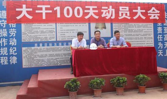 动员大会由项目书记周连河主持。周书记首先阐述了此项活动的目的和意义,对活动竞赛的具体实施方案做了重点说明和要求:要求项目部全体员工、各协作队伍在时间紧、任务重的条件下,迅速掀起大干高潮,加强管理,强化监督,重质量;规范操作、文明施工,保安全;项目部各职能部门各司其职、各负其责,确保工期目标顺利完成。