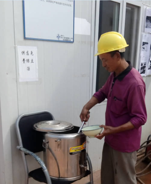 近日,南充气温持续上升,达到35℃高温天气,兰渝项目已进入高温作业状态,鉴于南充北站站房钢结构屋面施工、玻璃幕墙施工、钢结构天桥底漆施工等都是高空作业,施工难度加大,作业人员中暑风险较高。为避免作业人员在施工过程中因中暑进而造成安全事故,兰渝项目在给各施工队伍发放藿香正气水的同时还在员工通道旁为工人准备了免费的绿豆汤,保证工人在上班期间能及时补充水分,止渴消暑。