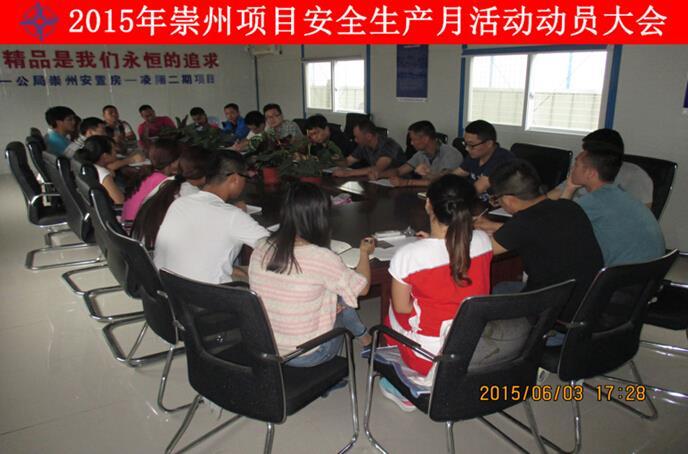 全国第十四个安全生产月来临之际,为认真贯彻公司关于开展“安全生产月”活动指示精神,崇州项目于6月3日启动“安全生产月”活动动员大会。活动由项目经理张泰杰主持,他首先阐述了“安全生产月”活动的重要意义,要求每位员工认真学习公司下发关于安全活动的文件,努力营造“以人为本、安全第一”的安全文化氛围,以务实的态度掀起学安全法规、尽安全职责,保安全生产的热潮,争当遵章守法的模范;并以此次活动为契机,大力宣传安全生产的法律法规、规章制度及公司相关要求,加快安全文化建设,在项目部营造一个“人人讲安全,人人抓安全”的良好氛围。
