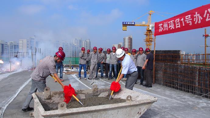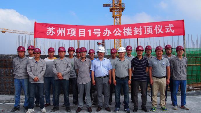 7月10日,苏州项目迎来项目一号楼封顶。业主二公司基建科孙重煌、徐晖,项目经理刘向军、项目书记王稚中,项目副经理索鹏飞和现场负责人参加了封顶仪式,庆祝二公司机关办公楼成功封顶。