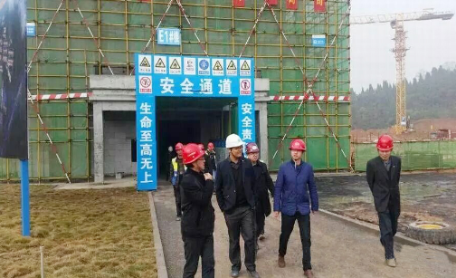 图为市建筑业协会、质安站领导施工现场指导创优工作