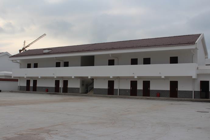 南充北站生产生活用房已建设完成,用房总建筑面积达4152平方米,包括单身宿舍III型、线(桥)工区、通信车间、信号工区、给水所I型、公安派出所以及接触网工区等,共计10余处。基础形式涵盖桩基、独立基础、条形基础等,结构形式以框架为主,其中接触网工区作业车棚为钢结构。此外,生产生活用房的坡屋面均采用铁红色西式烧结平瓦,这与沿线的民房在风格上保持高度一致,显得尤为靓丽、和谐。