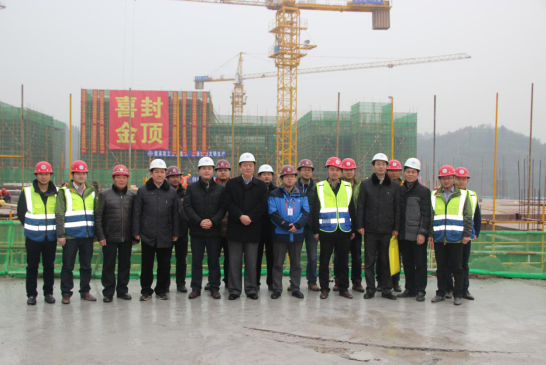 12月24日,宜昌一中宿舍楼2#楼喜封金顶。由宜昌城投公司代表及校方代表所组成的巡视组一行在宜昌市住建委副主任叶帮斌带领下亲临项目并表示祝贺。
