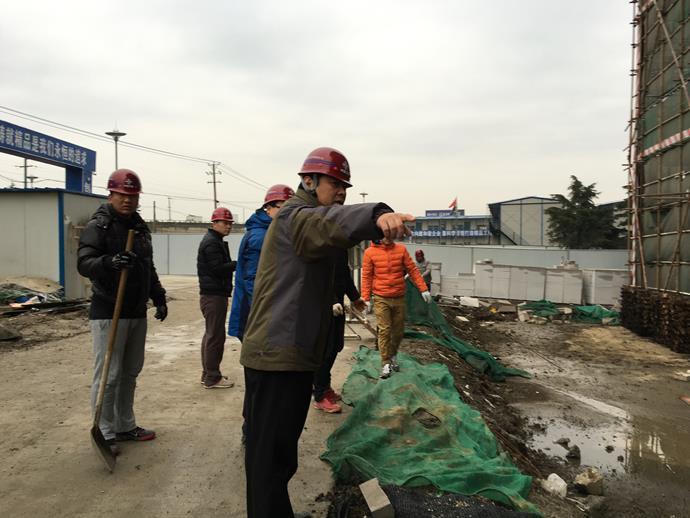 受近期雨夹雪等恶劣天气影响,苏州项目施工现场道路泥泞不堪,为现场作业增加了很大难度。为确保工程顺利有序进行,项目总工李伍贺带领项目部团员青年进行清扫活动,共青团员们用防护网覆盖道边泥土,用以防止扬尘;用铁锹铲除道边淤积雪块和泥堆,并填补被雨水冲刷后的坑洼;修补破坏安全网;清理现场乱扔的废弃物材料。由于义务参加清扫活动的项目职工人数超过预计,导致手套数量不足,项目领导赤手上阵,为项目职工做出了表率。经过2个多小时的劳动,整个现场焕然一新,得到项目领导的充分肯定。