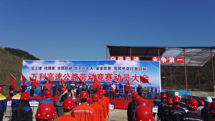 10月19日上午,万利高速公路举行了以“交土建,抢路面,全面联动,大干60天,安全优质完成年度目标任务”为主题的劳动竞赛动员大会,重庆市总工会副巡视员陈昌伟,万州区人大副主任、工会主席陈保余,局党委副书记、工会主席庞维新,公司党委书记赵会安等相关领导出席大会。