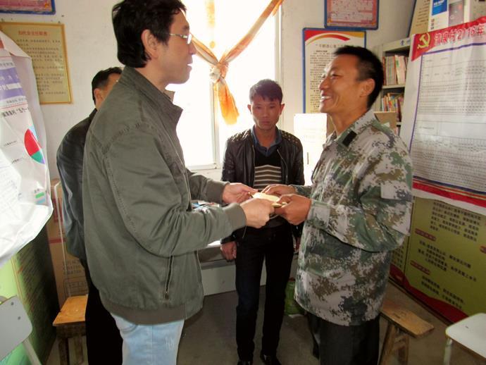 11月8日,公司总工程师曾文、项目党支部书记周海亮驱车四个多小时后来到清泉村,由于刚刚下过雨,车辆无法行驶到山上,大家徒步前往肖太飞家中慰问。当接过募捐的爱心款时,肖太飞难掩心中的激动:“中交一公局不但为我们铜仁市盖大楼,还惦记着我们这些有难处的山里人,这下我的娃娃可以继续读书了,感谢感谢感谢......”