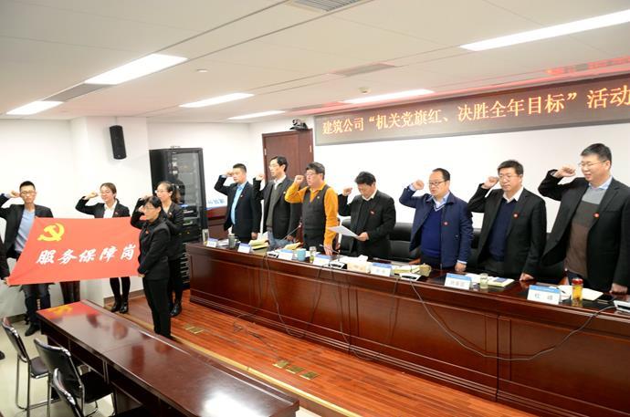 启动会宣读了《北京建筑分公司2017年“机关党旗红、决胜全年目标”活动实施方案》;为运营质量先锋责任区、后勤保障服务责任区授予“党员先锋岗”旗与“服务保障岗”旗,为相关责任人佩戴了党徽;并面对党旗许下“高扬党旗、提质增效、拼搏进取、确保全面完成公司生产经营目标”的郑重承诺。至此,公司“机关党旗红、决胜全年目标”活动正式启动。