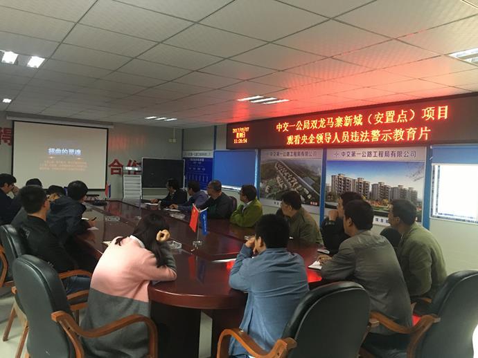 5月7日,双龙项目组织项目领导班子、各部门负责人以及全体党员观看了央企领导人员违法警示录,通过以案说法,达到以警促廉的目的。