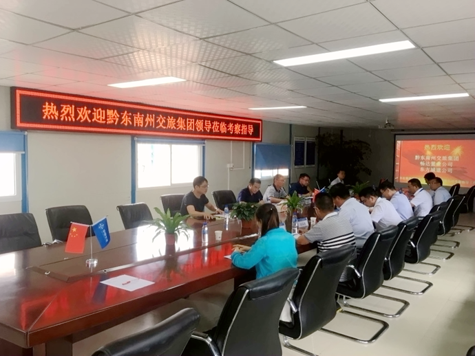 交流会上,考察组首先观看了中交集团、一公局及公司企业宣传片,了解了公司情况及取得的业绩。杜峰对考察组的到来表示欢迎同时,表达了愿与黔东南州交旅集团公司强强联合、实现互利共赢的希望;杨永洪对公司目前发展状况进行了补充介绍;贵安项目、双龙项目分别汇报了项目概况、组织机构、施工进度、技术质量安全管理等情况,使考察组更深入的了解了公司经营方式和管理特色。