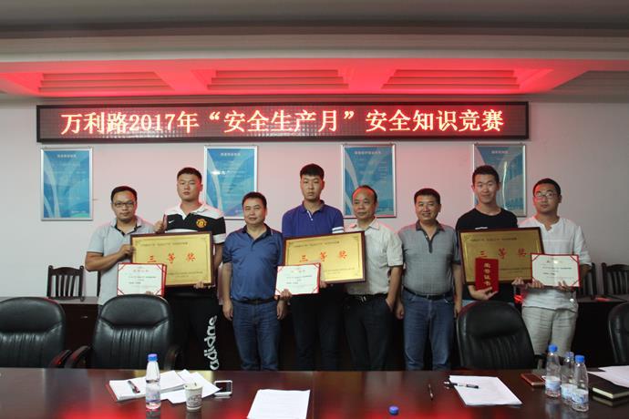 又讯:6月27日,万利八分部以29.6分的最终成绩荣获万利路总包部组织的2017年“安全生产月”安全知识竟赛第三名好成绩。
