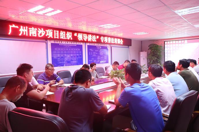 为了加强本单位法治文化建设,早日实现建立法治企业的目标,10月25日,根据公司下发的“关于开展‘领导讲法’活动具体安排的通知”的要求,广州南沙项目开展了“领导讲法”专项普法活动。