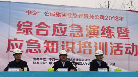 11月21日,公司综合应急救援演练暨应急知识培训活动在北师大项目举行。这是建筑分公司规模最大的一次综合应急演练,中交一公局集团城市房建事业部副总经理唐建勇,公司党委书记、执行董事闫广东,党委副书记、纪委书记、工会主席鞠红俊,副总经理杨永洪及公司机关各部长全程参与演练观摩。本次演练还邀请了铜仁市总工会主席田荣及铜仁市安监站、业主单位、监理单位和兄弟项目共计300余人参加,铜仁市电视台全程进行了跟踪报道。