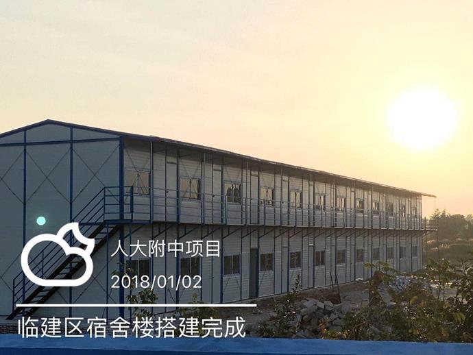 1月2日,海南省人大附中三亚学校项目临建区宿舍楼搭建完成。