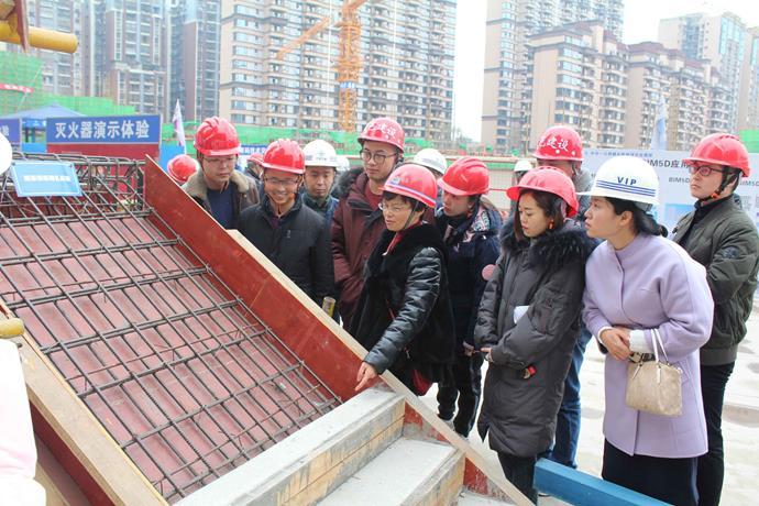 调研人员首先在会议室听取了项目工程简介及重点工作开展情况汇报,随后参观了锦天新城二期样板体验区和4楼一层样板间。在参观过程中,项目技术人员介绍了项目管理过程中的安全管理和技术质量管理的重点、亮点,包括临边防护、洞口防护、安全标识、基于BIM技术的二维码技术交底和实测实量二维码、试块养护及测量等。