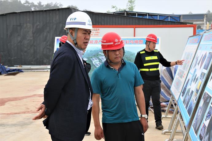 4月13日,中交一公局副总经理刘其亮,经营管理部总经理张良荣一行到铜仁移动能源产业园项目现场进行指导。