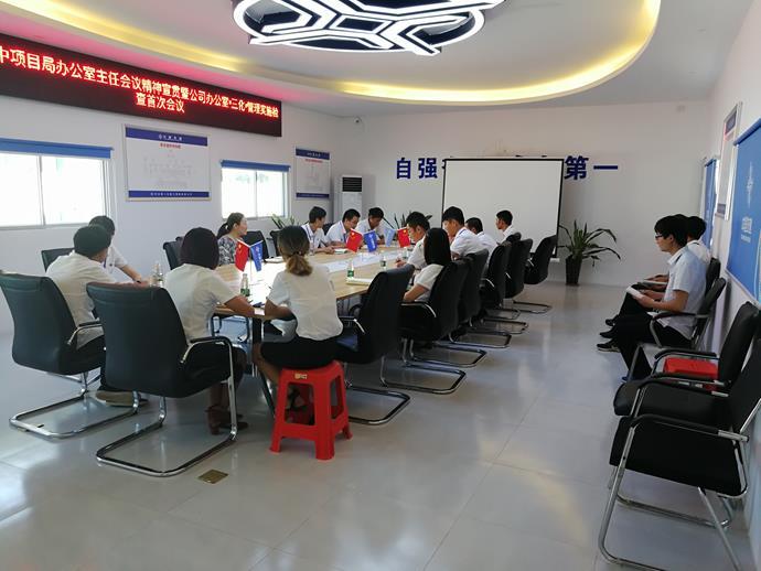 一来到项目部,张林清就向项目人员开会宣贯了局办公室主任会议精神,强调了此次检查的重要性。之后在项目综合办全体成员的配合下,开始了创建一流办公室的督导检查工作,严格按照检查表逐条检查,对项目综合办的协调、公文处理、档案管理、会务接待、宣传等工作进行了检查和指导。随后在综合办以及安全部人员的陪同下,实地巡查了项目的办公区、生活区、生产区情况。经过一系列的检查,张林清指出了项目部有六个地方可以进一步提高。