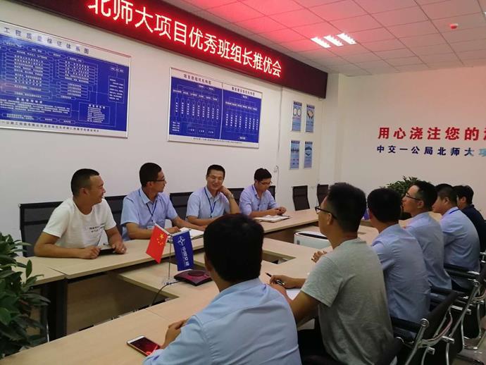 北师大项目为进一步提升施工作业的标准化程度,优化施工现场生产条件,保证施工安全和质量,推进工程施工进度,使施工现场实现“常态化”管理,同时真正打造出一批“靠得住”、“水平高”的施工班组,积极推行“班组化延伸管理,推行班组作业标准化管理”,每周定期举行优秀班组长推优会。