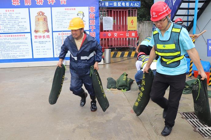 为加强2018年度防台防汛的安全工作,深入地了解防台防汛应急常识,让人人都切实树立起防台防汛意识,真正掌握防台防汛知识,并具备自救互救的能力,提高抗击突发事件的应变能力,本着“早准备、早安排、早落实、早检查”的原则,真正做到“生命至上 安全发展”,切实落实各项防台措施,避免和减少因灾害所造成的财产损失。6月9日上午,广州南沙项目根据安全部制定的2018年度防汛防台应急救援演练方案,以实地操练的方式在现场进行一次应急演练活动。此次演练全员出动。总指挥由项目经理倪同涛,项目书记郭保展担任。