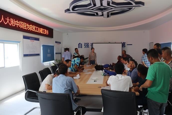 农民工工资问题一直以来都是国家的一件大事,根据国家《建设领域农民工工资支付管理暂行办法》等相关法律法规以及局和公司有关规定,6月26日,人大附中项目请来了中国建设银行三亚海港支行的工作人员在项目会议室为农民工集体办理工资卡。