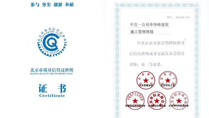 近日,北京建筑分公司李伟峰建筑施工管理班组在北京质量协会发起的“北京市质量信得过班组”评选活动中荣获成果交流一等奖好成绩,深刻践行了“质量效益年”主题活动,为打造建筑分公司质量保证体系,不断推进项目基层质量提升改善工作做出了贡献。