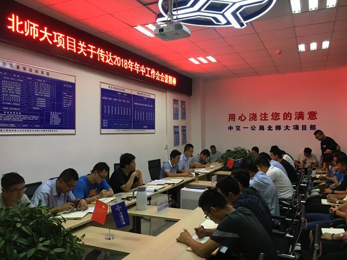 8月20日晚,北师大项目部组织全体管理人员学习宣贯公司2018年年中工作会议精神。会议传达学习了集团公司年中工作会精神,并就公司上半年取得的成绩、面临的问题进行分析与总结,重点安排部署了下半年工作。项目经理周海亮为大家宣贯了公司总经理赵刚做了题为《加强理念引领,坚持问题导向,全面推进公司高质量发展》的工作报告。