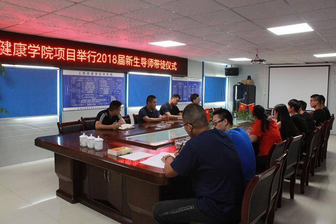 为进一步做好“传、帮、带”工作,快速提高新员工的专业技能,帮助其确立正确的奋斗目标,使之迅速成长,28日下午2点半,健康学院项目在项目部会议室举行了2018届新生导师带徒签约仪式,项目领导班子、各部门负责人及3对师徒共计13人参加仪式。