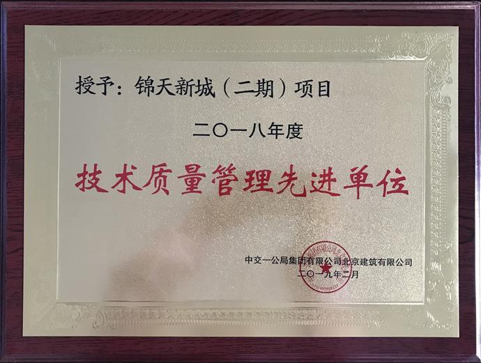 近日,锦天新城项目在公司2019年技术质量工作会上荣获2018年技术质量先进单位称号。